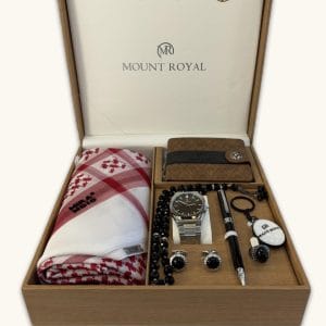 هذا الطقم الرجالي الفاخر من Mount Royal يتميز بتصميم أنيق ومتكامل، وهو مثالي كهديّة فاخرة أو لإكمال إطلالة الرجل العصري.