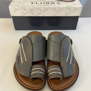 🔹 التصميم: حذاء شرقي فخم بلون رمادي داكن مع لمسات تطريز أنيقة
