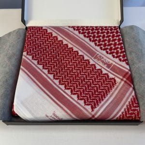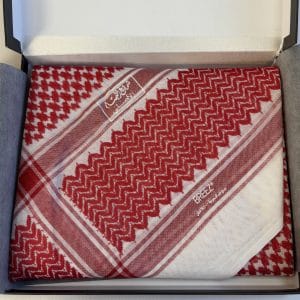 - شماغ كلاسيكي بنقشة حمراء وبيضاء لإطلالة تقليدية أنيقة.