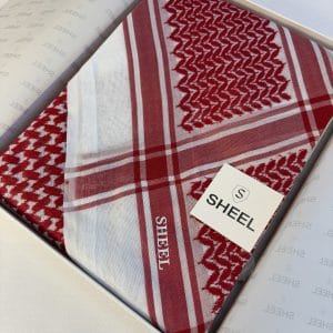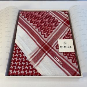 ✅ شماغ كلاسيكي بنقشة حمراء وبيضاء، بتصميم راقٍ وجودة عالية.
