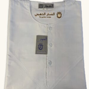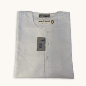 ثوب الشذر العماني الأبيض يتميز بتصميمه الأنيق الذي يجمع بين الراحة والفخامة. مصنوع من قماش عالي الجودة يوفر نعومة ولمعانًا راقيًا، مما يجعله مثاليًا للاستخدام اليومي والمناسبات الرسمية. يتميز بياقة مستديرة وأزرار أمامية لمظهر كلاسيكي بسيط وأنيق. تصميمه العملي والخفيف يجعله مناسبًا للمناخ الحار، مع خياطة متقنة تعكس الجودة العالية.