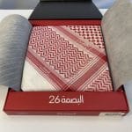 شماغ البسام بصمة 26 هو أحد الشماغات الفاخرة المعروفة بجودتها العالية وتصميمها المميز. يتميز هذا الشماغ بنقشته التقليدية ذات اللونين الأحمر والأبيض، وهي منسوجة بدقة لتعكس الطابع التراثي الأصيل مع لمسة عصرية.