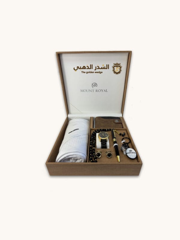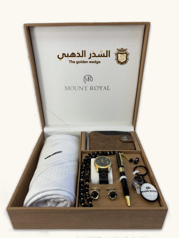 هذا الطقم الرجالي الفاخر من Mount Royal يتميز بتصميم أنيق ومتكامل، وهو مثالي كهديّة فاخرة أو لإكمال إطلالة الرجل العصري. يتكون الطقم من:
