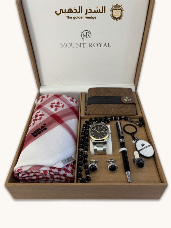 هذا الطقم الرجالي الفاخر من Mount Royal يتميز بتصميم أنيق وفخم، مما يجعله خيارًا مثاليًا لهدية راقية أو لإكمال إطلالة الرجل العصري. يحتوي الطقم على: