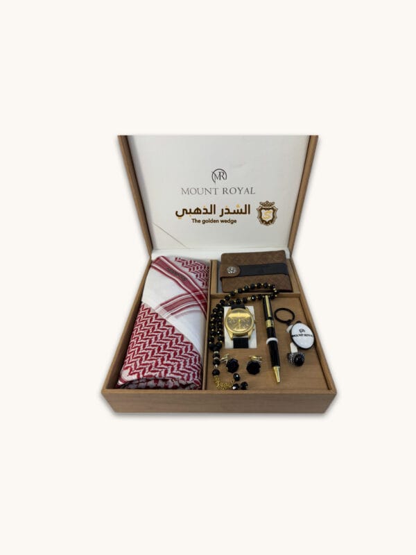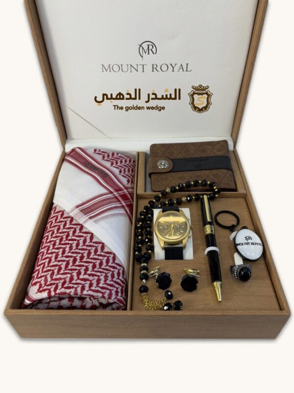 اجعل إطلالتك مميزة مع هذا الطقم الفاخر من MOUNT ROYAL، الذي يجمع بين الأناقة والرقي في صندوق خشبي أنيق.
